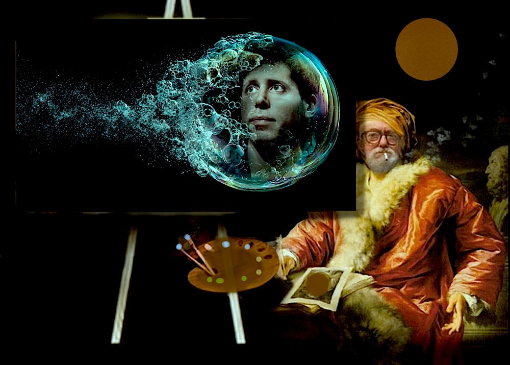 Facing a bleak financial future for many of his inner circle of friends and clients, Court Painter has called upon the studio’s resident financial expert, D.Eep S. Eek (DeepSeek), to outline a business survival strategy, designed as protection from the impending bubble burst boosted by browbeating brainiacs.