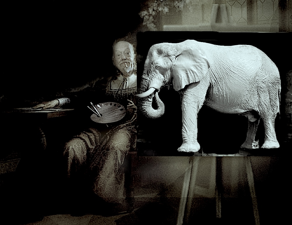 Court Painter resting after his prodigious pachyderm painting production.