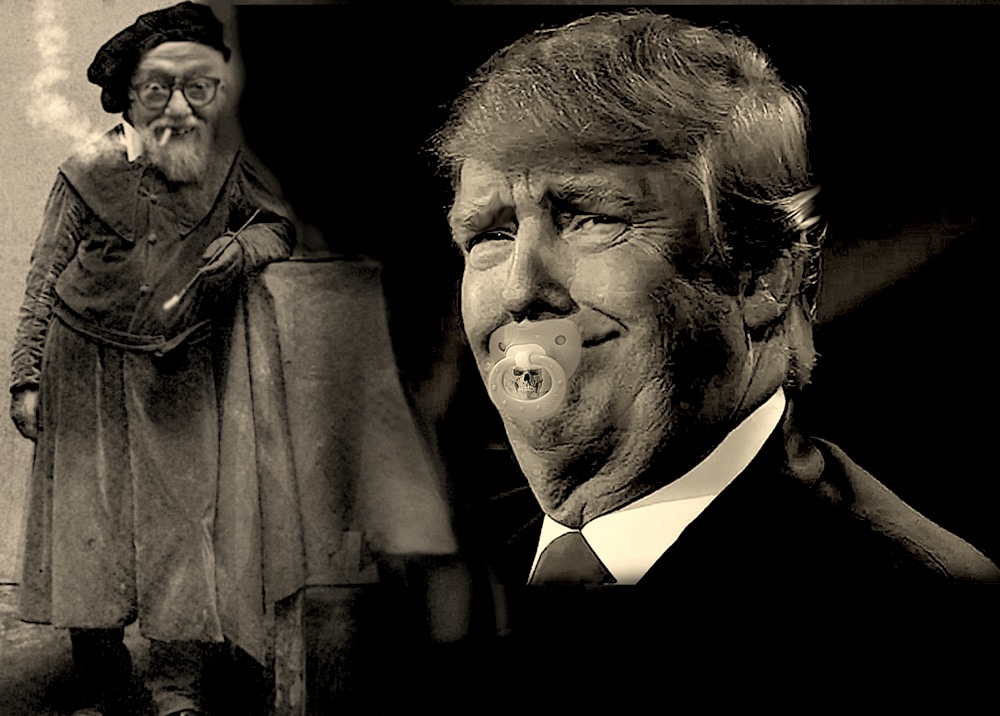 Court Painter shown all dressed up with large repro of The Donald’s Mug