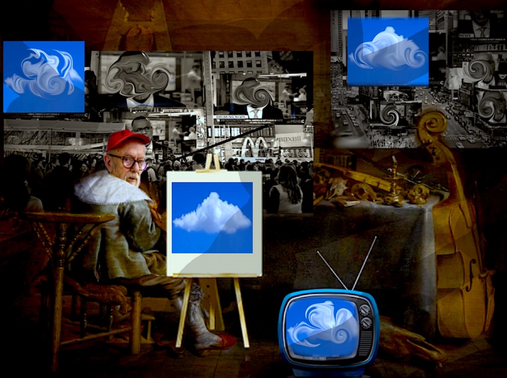 Court Painter prefers to spend his time painting in his studio, absorbed in the gritty matters that define his life and work—firmly grounded in the physical, somatic materiality of his artistic practice. More often than not, he remains blissfully oblivious to the digital disasters that plague the hustle and bustle of the 21st century.