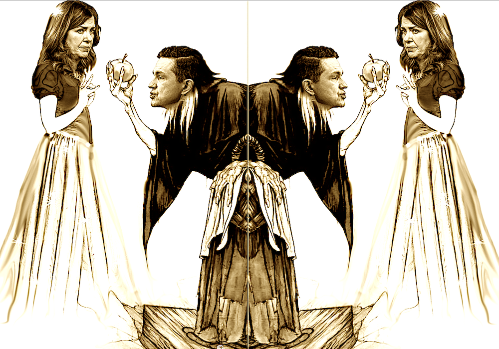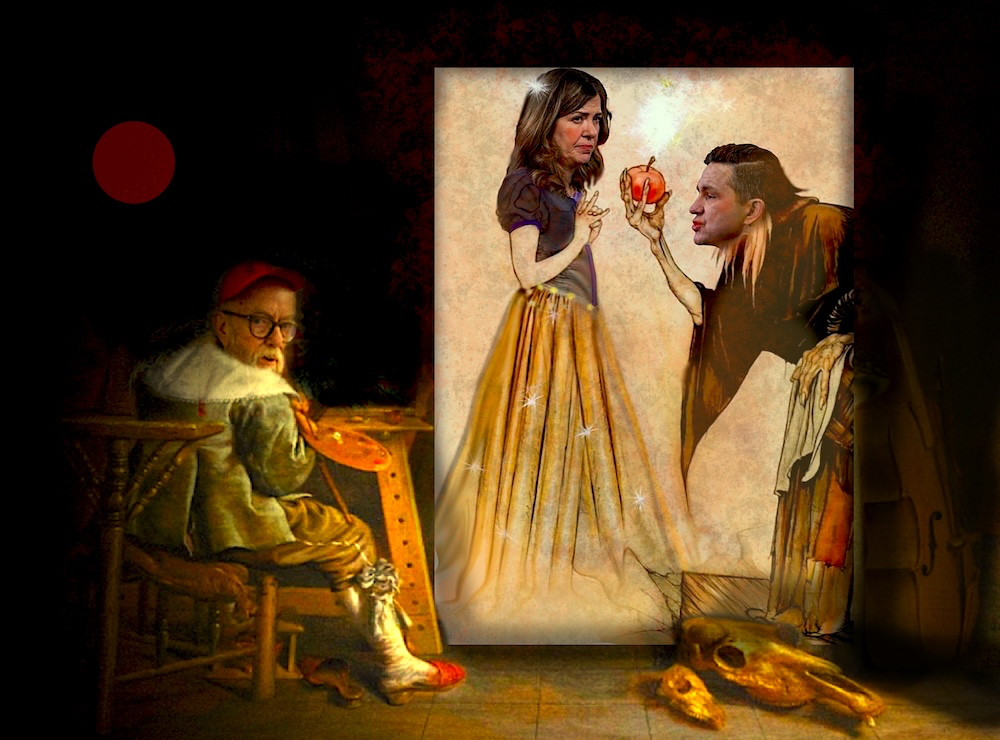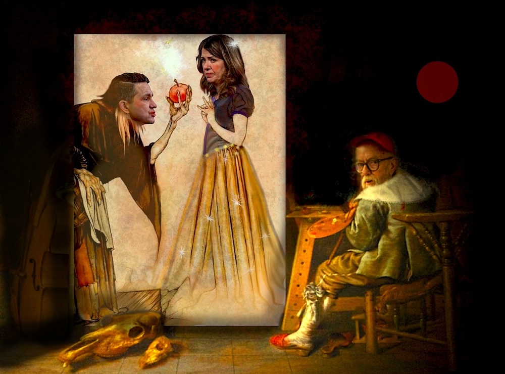 Court Painter extends his gratitude to Alberta Premier Danielle Smith and federal Conservative Opposition Leader Pierre Poilievre for modelling this series of variations, which consumed a disproportionate amount of his time, in pursuit of an elusive allegorical cause—perhaps best explained by a shared gravitational relationship affecting both their movements and orbits.