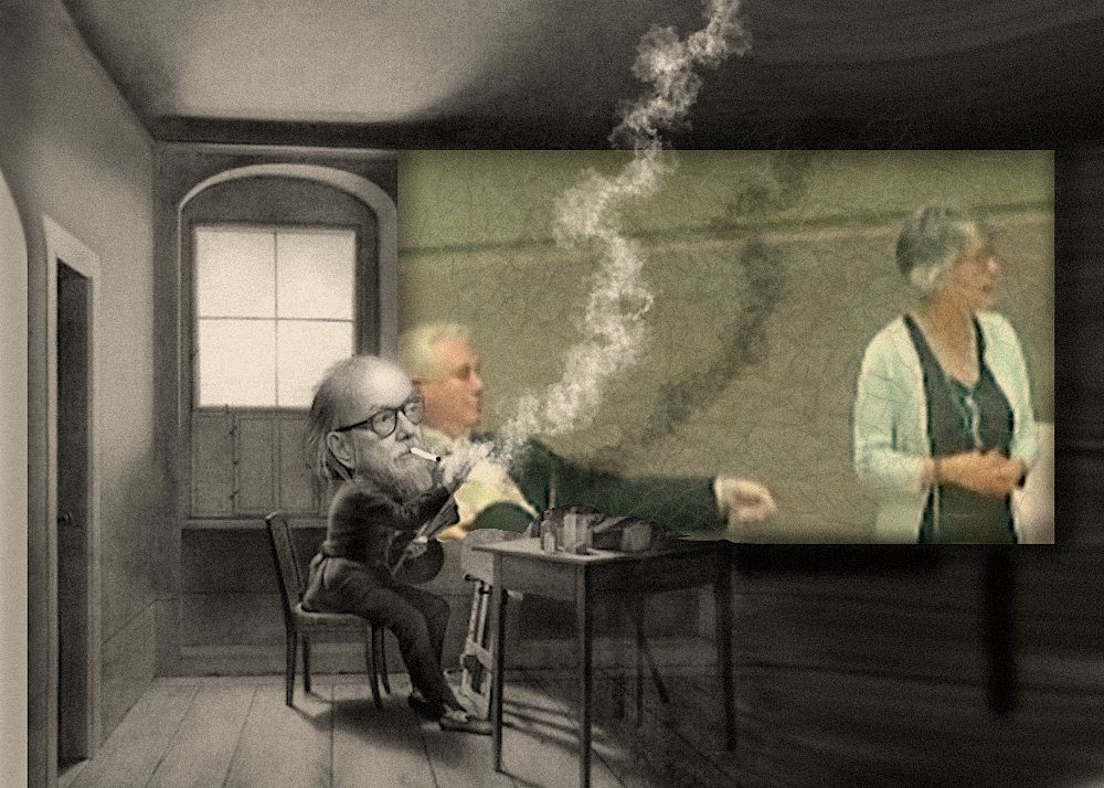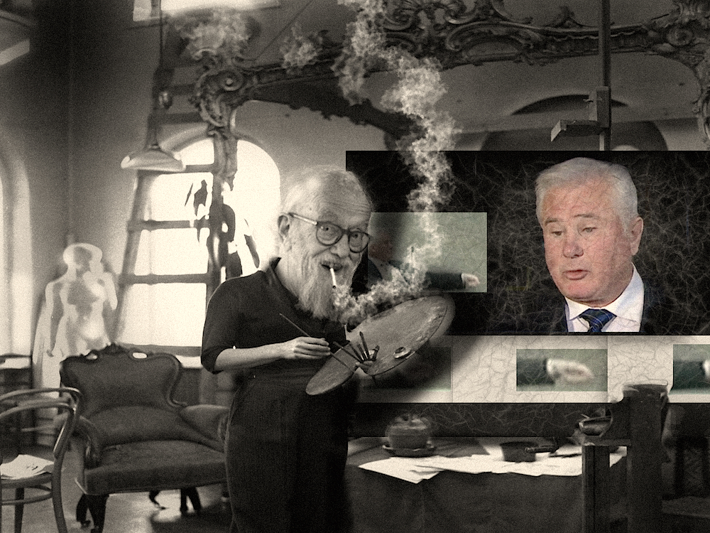 photo: Court Painter and Press Attache deliver painting to Heritage Minister Joly