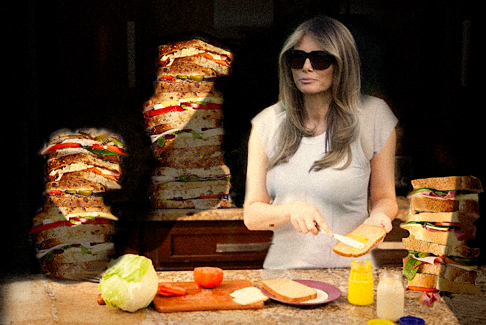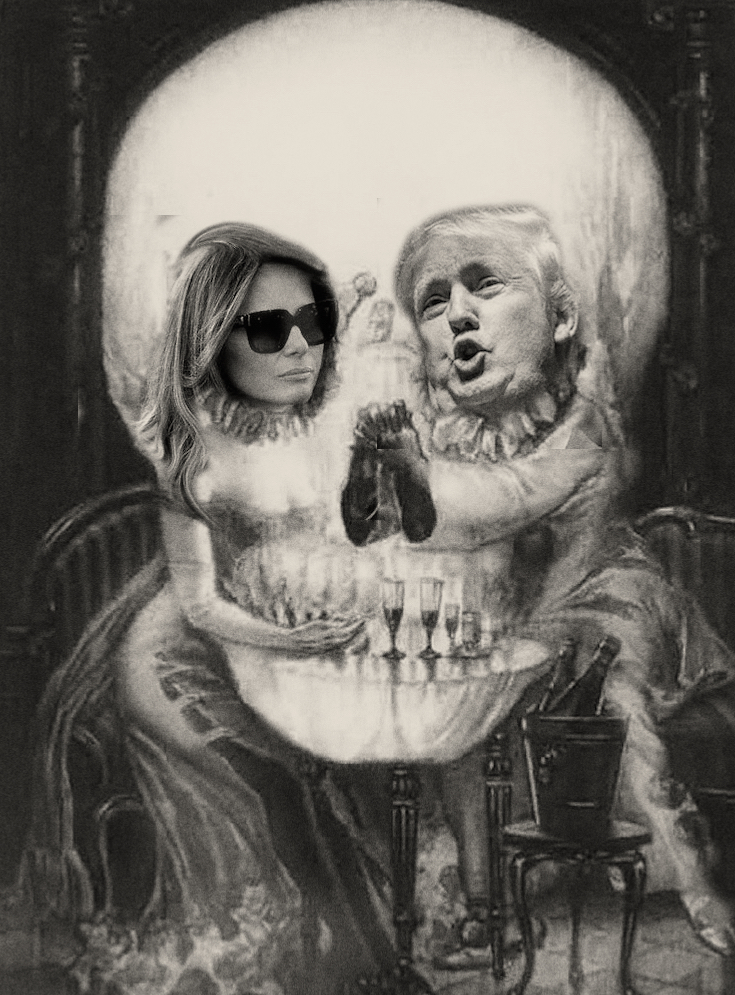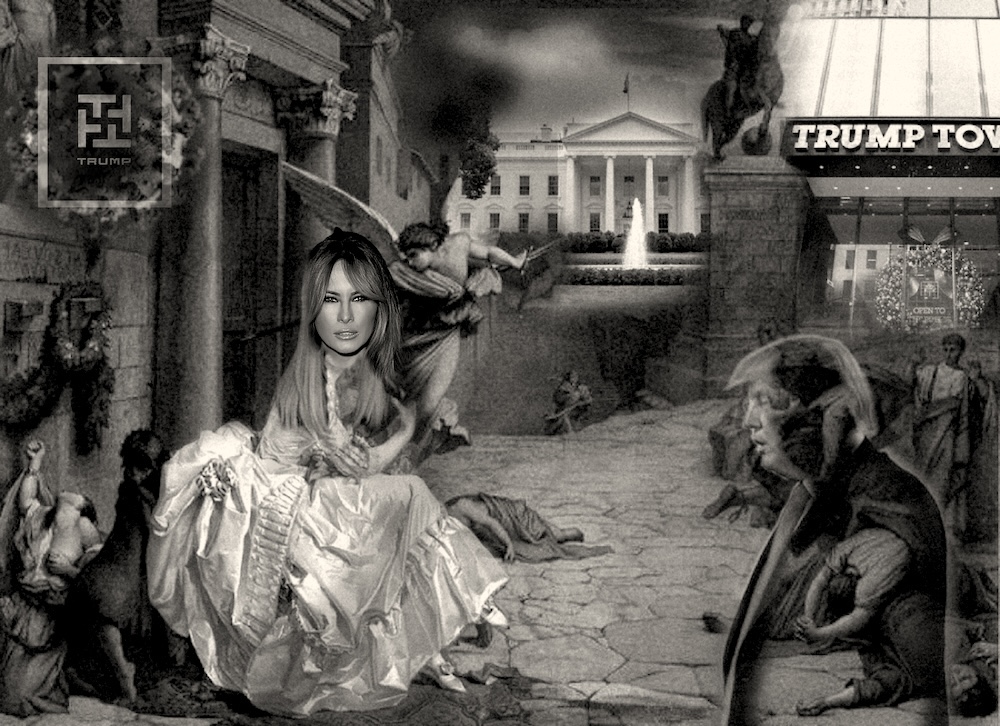 Court Painter’s Press Attache and canvas stretcher AHM was tasked with selecting a number of paintings where Melania appears and where she steals every scene.