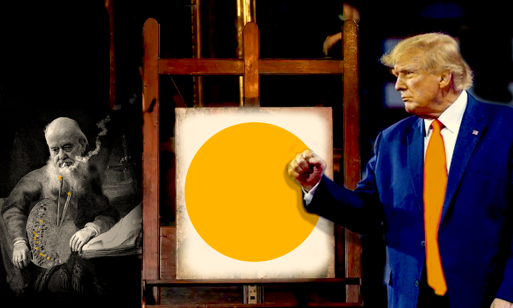 Court Painter seen with empty money bag and unsold painting of empty moneybag.