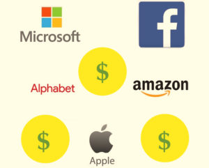 Big Tech stocks, which were hit in the first weeks of the pandemic, are on an upward march to the top of the market-cap heap. Microsoft at $1.32 trillion. Apple at $1.26 trillion. Amazon at $1.14 trillion. Alphabet at $900 billion. Facebook at $577 billion. This group now makes up just over 20 percent of the S.&P. 500, which is a flashing yellow signal of what is to come.